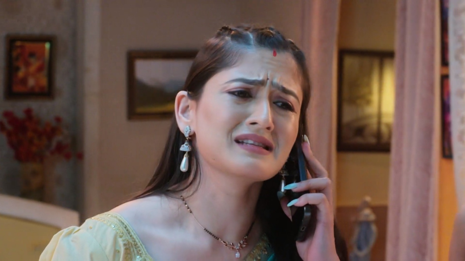 Yuvraj’s sister came to their room and asked Mehek to call Anjali. Mehek called Anjali and started crying on the call. Anjali asked her why is she crying? Mehek asked Anjali to do a favour on her.
