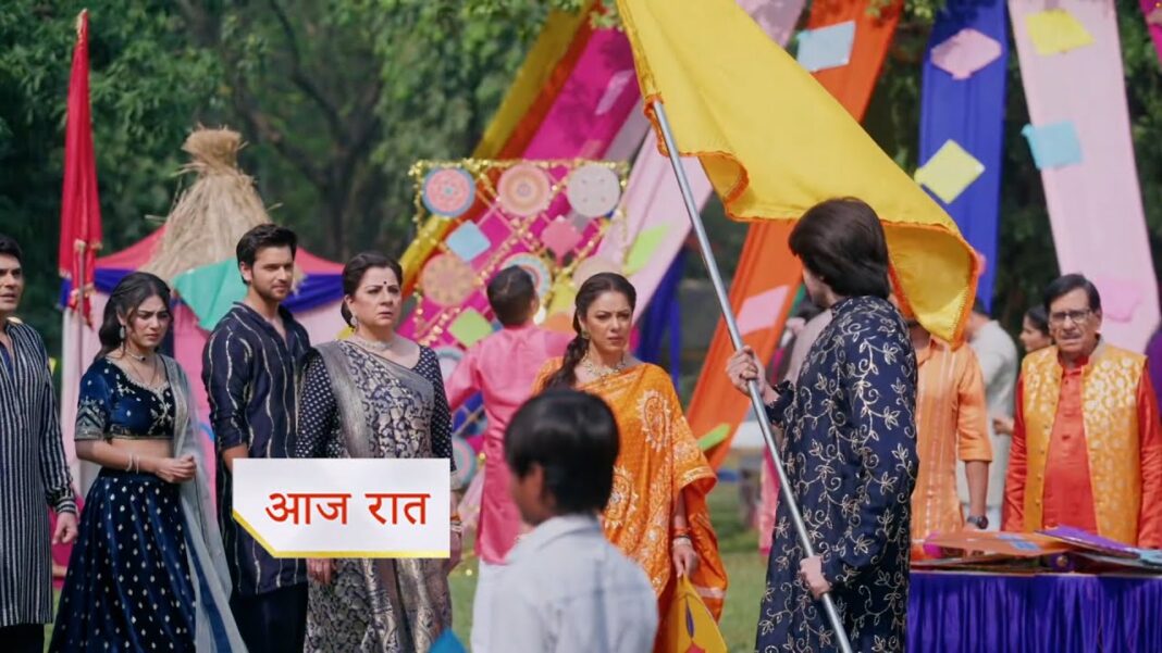 Anupama distributes laddoos. Ansh asks when they will fly kites. Toshu brings a kite with his company’s branding hoping for free publicity. Anupama and Leela tease him.