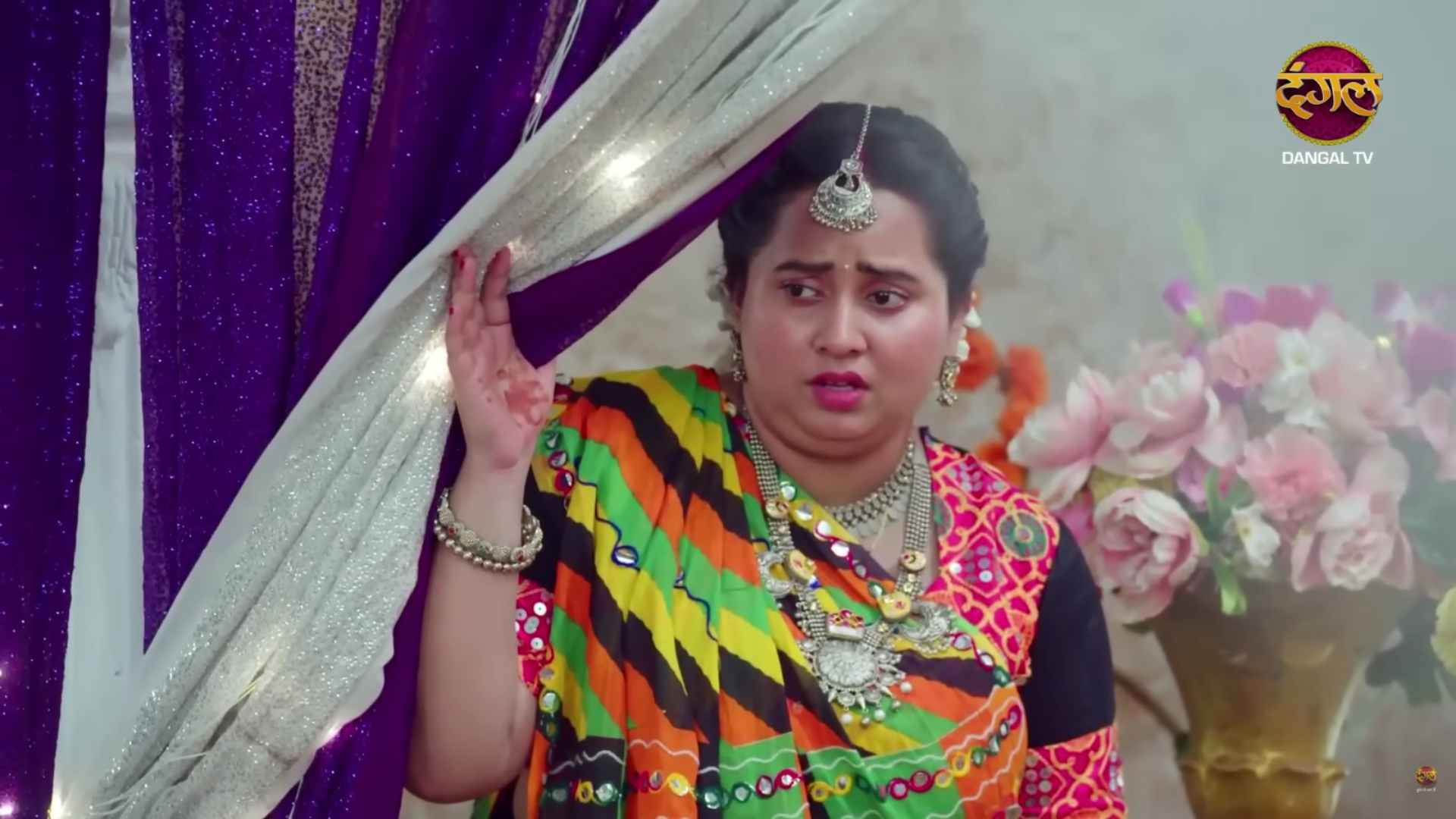 She became scared to come in the room as the haldi fell down from her hand as she went out. Radhya again came out in the room.