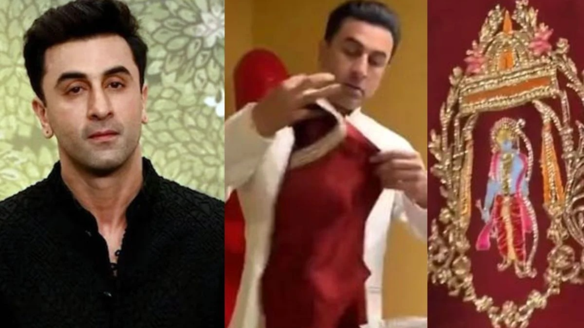 The Back Detail: The centerpiece is a detailed, hand-embroidered image of Lord Ram on the back, symbolizing the character Ranbir is bringing to life on the silver screen.